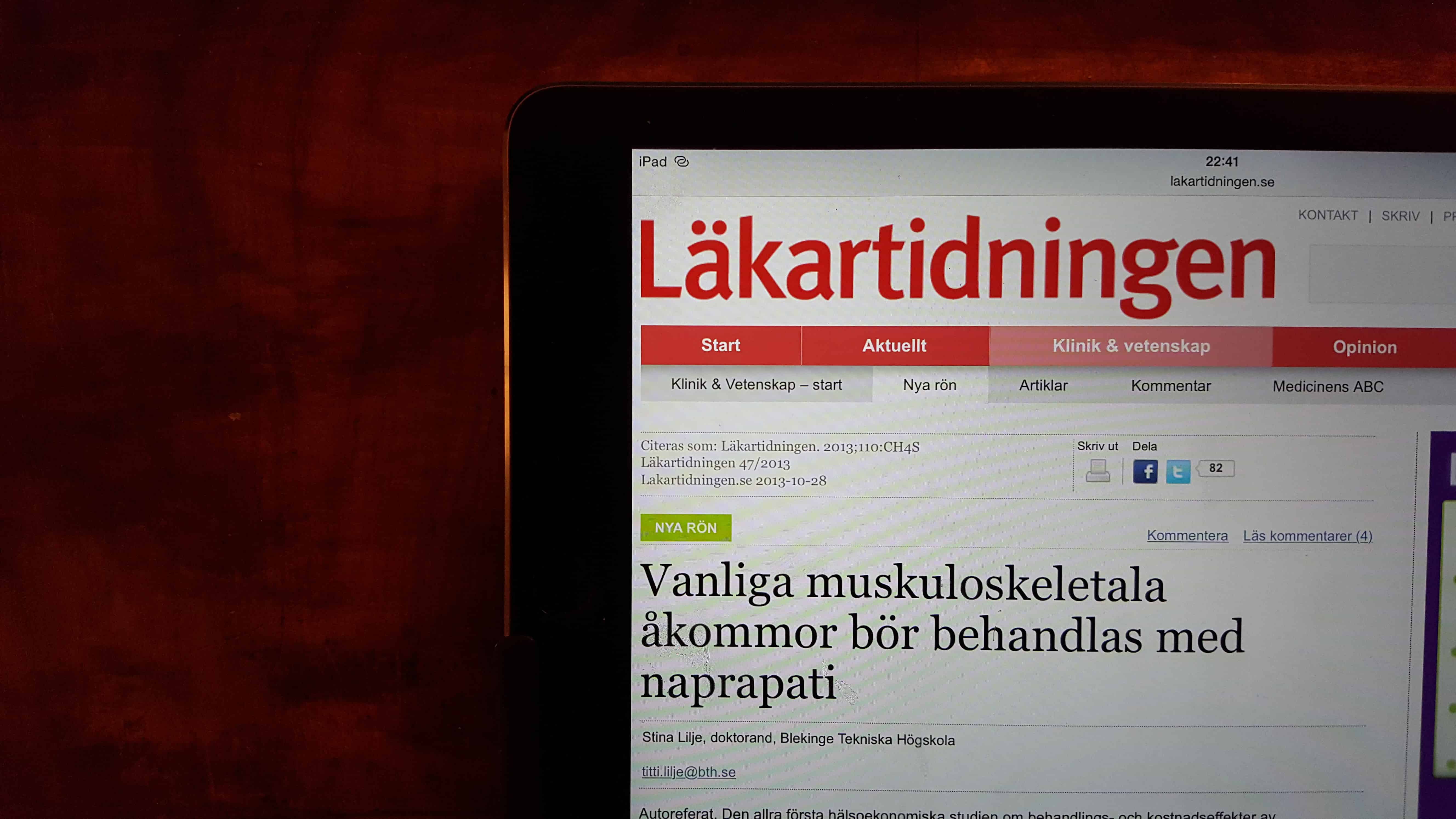 Läs hela artikeln “Vanliga muskuloskeletala åkommor bör behandlas med naprapati” i Läkartidningen.